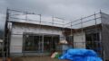 外壁工事も並行して進んでいるようで、西面の壁や、南面の壁の一部が貼られていました。色決めの時はずいぶんと迷いましたが、こうやって貼られているのをみると、なかなかよい選択をしたな!と思いました。