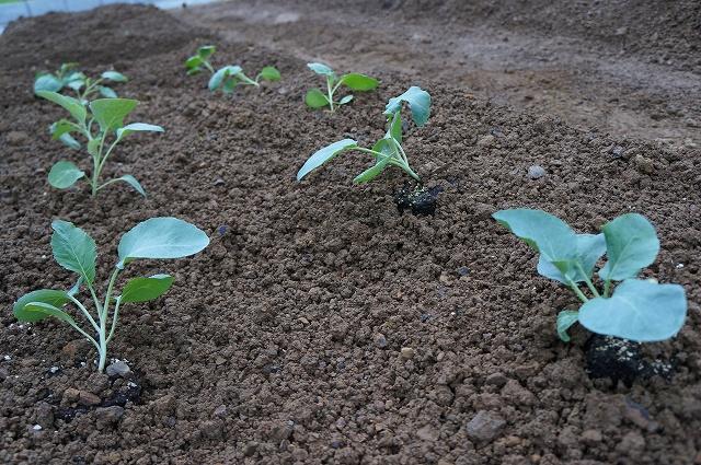 今回は、ブロッコリーとカリフラワー、ジャガイモ、大根そしてカブを植え付けました。今畑から見えているのは、苗で買ったブロッコリーとカリフラワー。