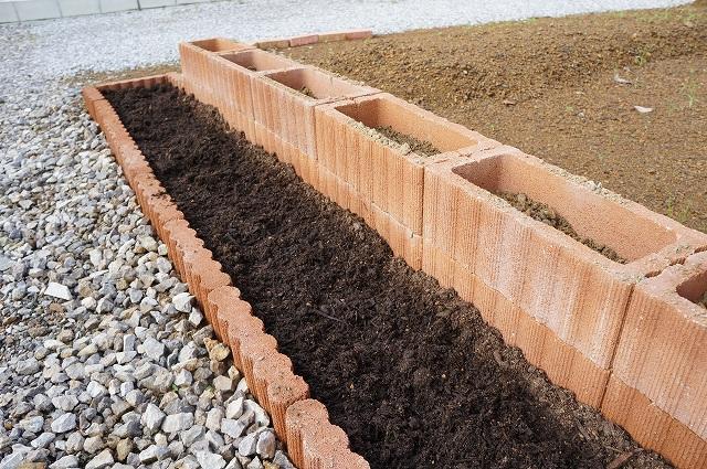 そうそう、畑と庭の境界に、花壇を作ってみました。ブロック積んで、土をいれて…なかなか大変な作業でしたが、何とかいい感じに仕上がりました。