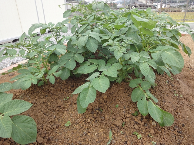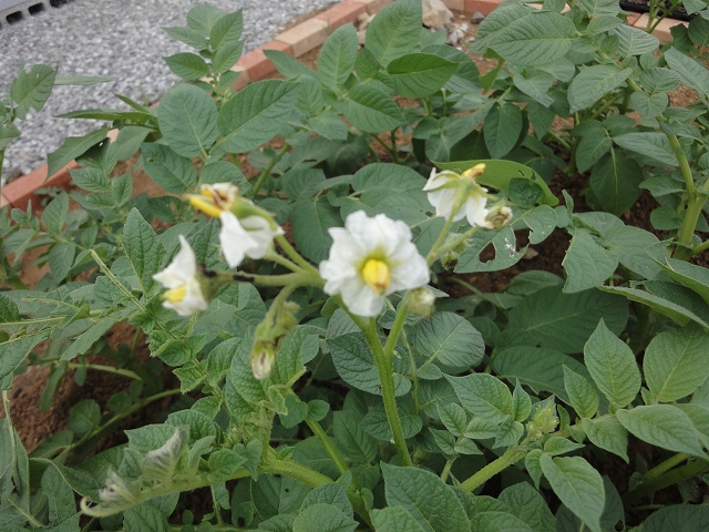 白と黄色のかわいい花ですね~。ジャガイモはとても順調に育ってくれていてうれしいです。