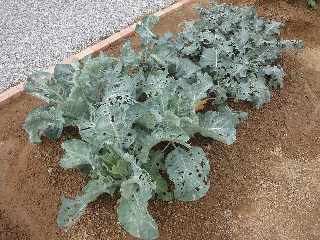 次に残念な報告ですが、ブロッコリーがアオムシ君にかなりやられてしまいました(汗)