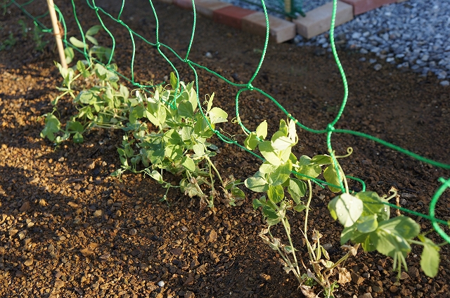 スナップエンドウは、つるがネットに巻き付き始めました!!