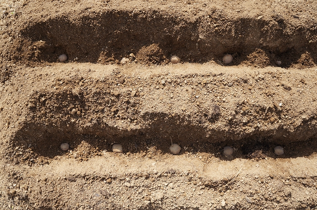 こうすることで、土の中で種イモが腐ってしまうことを防ぐそうです。