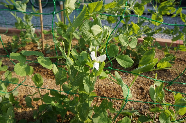最近は、本当に暖かくなり、畑の作物にも変化がみられます。冬の間、霜にぐっと耐えていた、エンドウ豆に花が咲きました♪