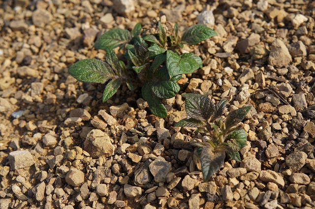 まず、芽が出たのは「アンデスレッド」。「きたあかり」はまだですが、もうすぐ出てくれると信じています!