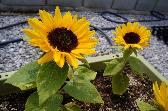 そうそう、地植えしたひまわりは、大きく育っているのですが、プランターに植えたひまわりはこんな感じになりました♪