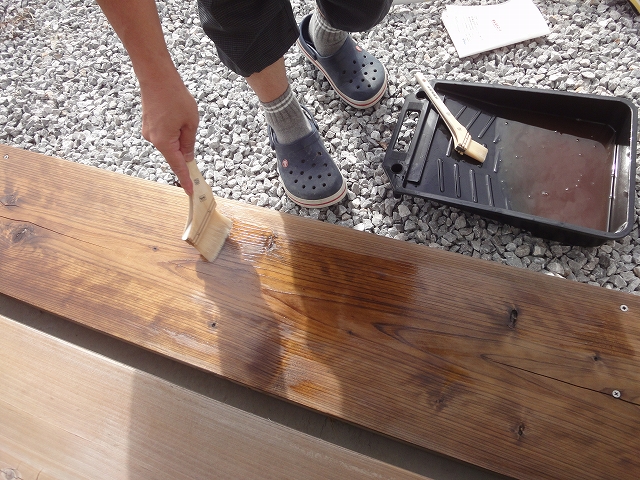 2日間に分けて2度塗りして、完成! クリア(透明)色を選んだのですが、少し木の色が濃くなった気がします。