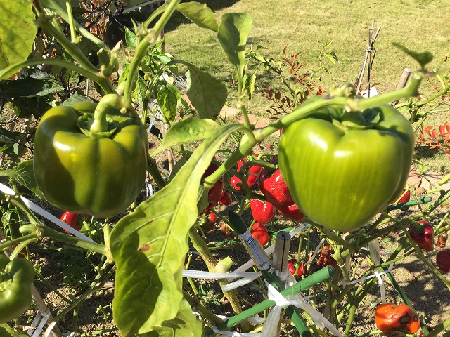 オクラとパプリカです。特にパプリカは立派で、きれいな黄色いパプリカがまだ育っているので、びっくりです。