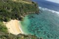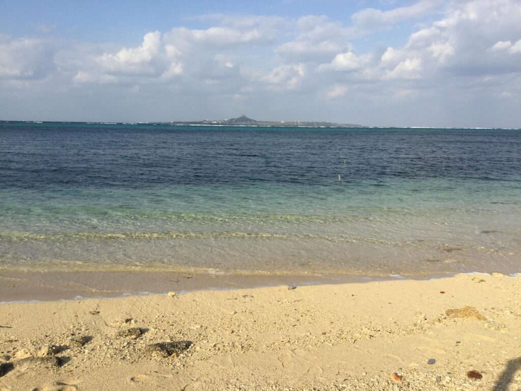 海岸線は、エメラルドグリーンの海面の向こうに伊江島が見えて、こちらもいい感じでした。5年前に来た時に見たビーチは、新しくできたホテルのプライベートビーチになったようで入れませんでした。