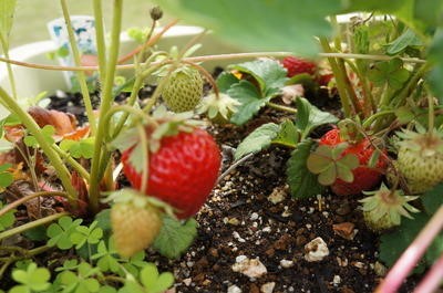 畑の方では、イチゴがだんだん色づいてきました!!