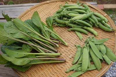 そのほか、スナップエンドウときぬさやエンドウ、そして、小松菜のぬき菜と、ほうれん草の収穫をしました。
