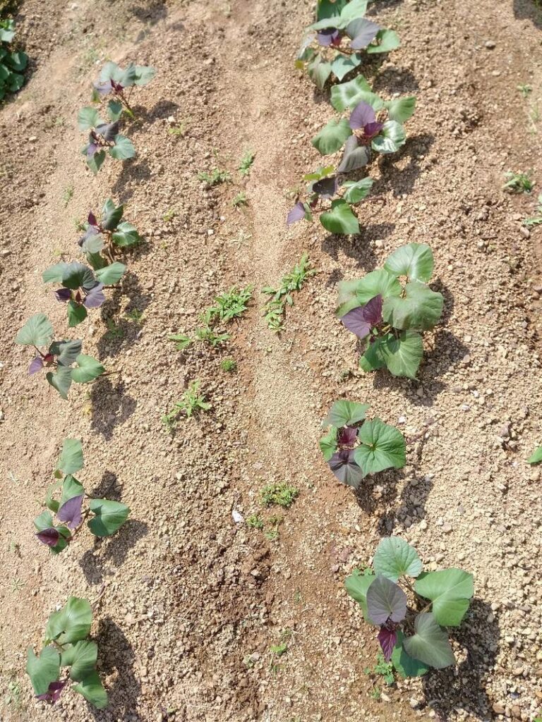普通のいもと違って、葉っぱが2色なんですね。紫の葉がきれいです。