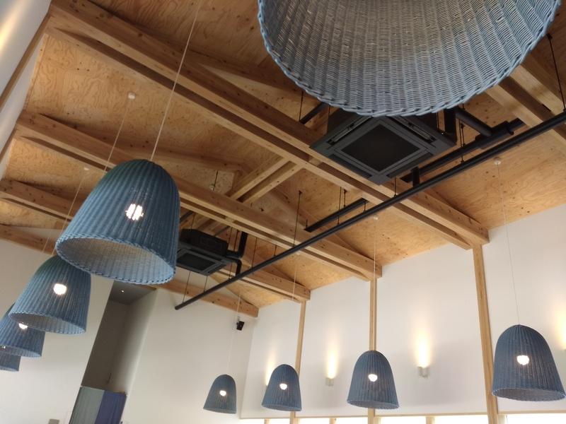 天井が高くて、木をふんだんに使っていて、いい感じです。