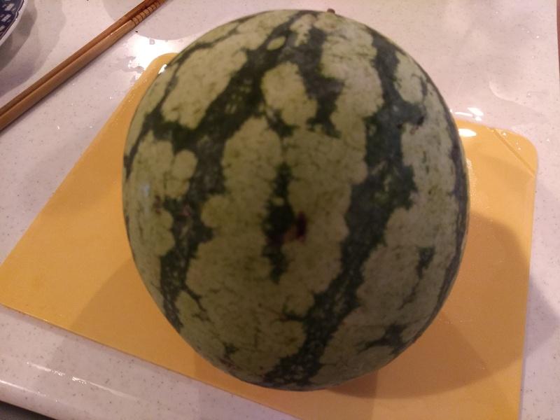 一向に大きくならず、枯れてしまったスイカですが、まあ、直径20cmくらいの大きさで収穫できました。