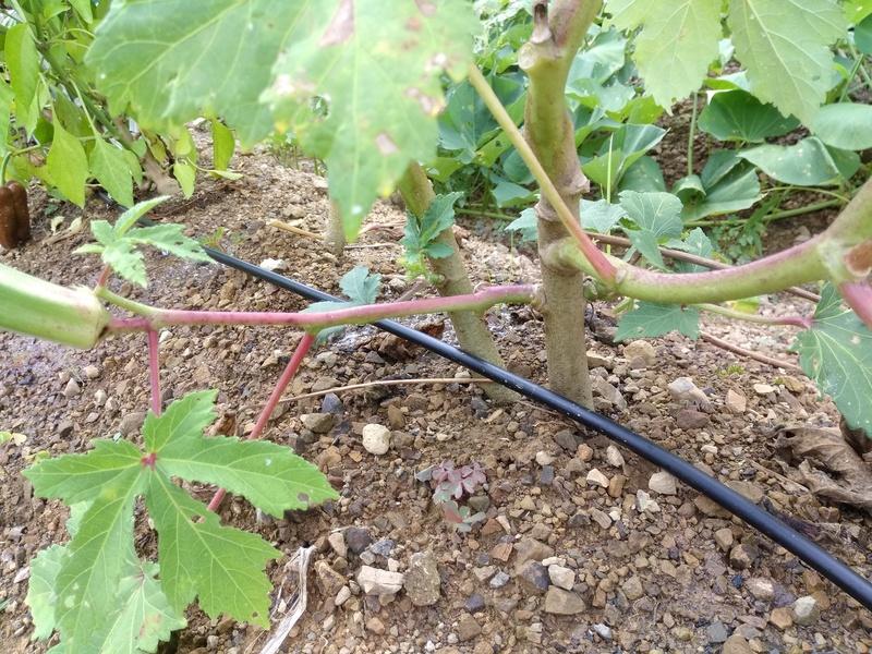 畑や花壇全体に水かいきわたるようにするために、灌水ホースやスプリンクラーをどう設置するのがベストか、1週間ほど色々なパターンを考え抜いて、いざ設置してみると・・・・