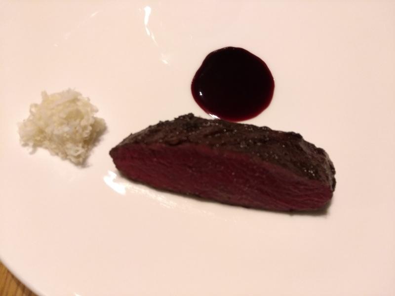 他にも色々な料理が出ましたが、これがメインの「エゾシカのロースト肉」。