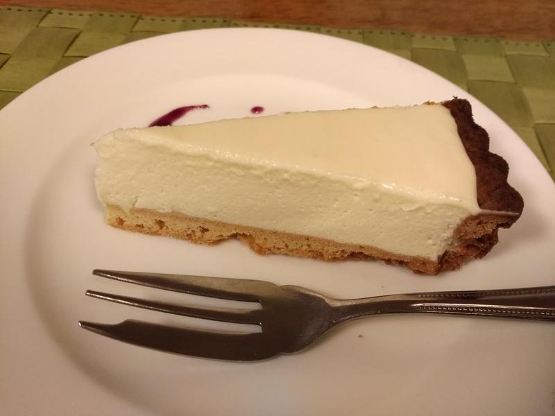 夕食、おいしかったです。手づくりデザート「レアチーズタルト」も絶品でした。