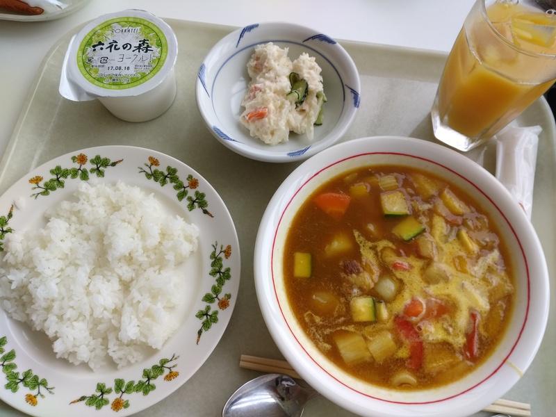 スープカレーセット。野菜がたくさんの入っていて、ボリューム満点。ヨーグルトも濃厚でおいしかったです。