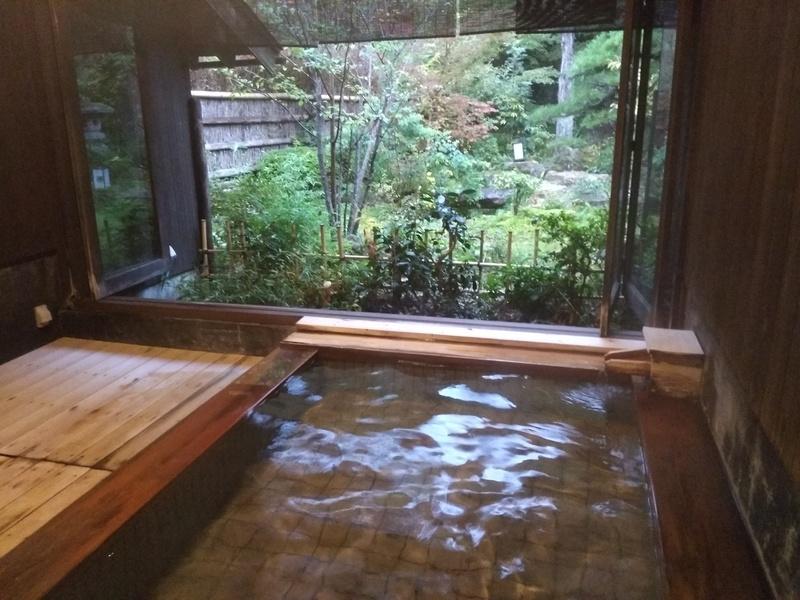 これは、檜風呂。半露天になっていて、きれいに手入れされたお庭を眺めながら、ゆったりとお湯につかることができました!
