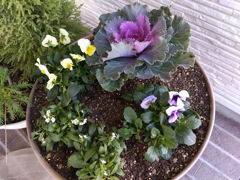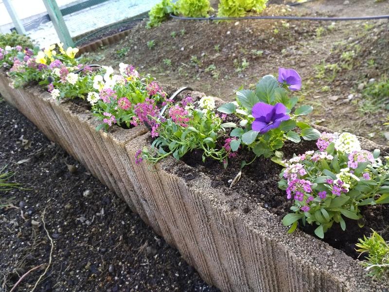それに追加で、今日は上の段に、ビオラとアリッサムを植えてみました。