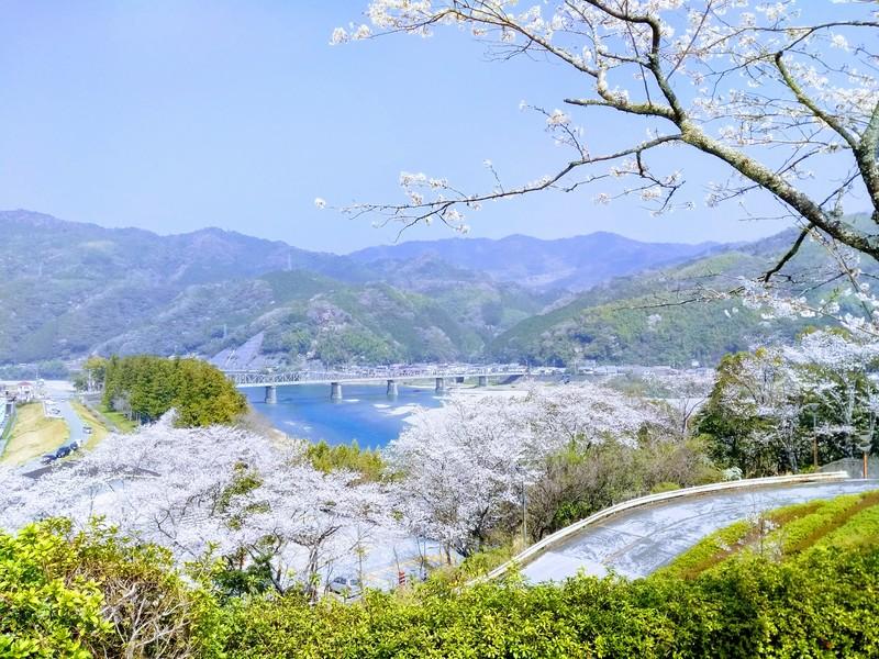 満開の桜と、仁淀川、鉄橋、そして青空!最高の組み合わせです。