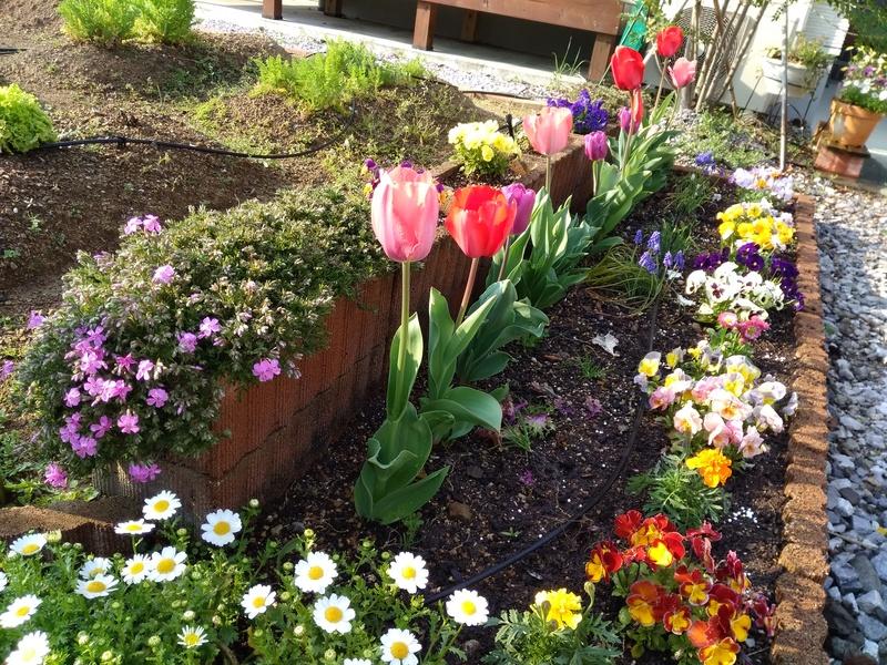 色々な色が混ざり合って、とってもいい感じになりました。チューリップもほとんど開花しました!