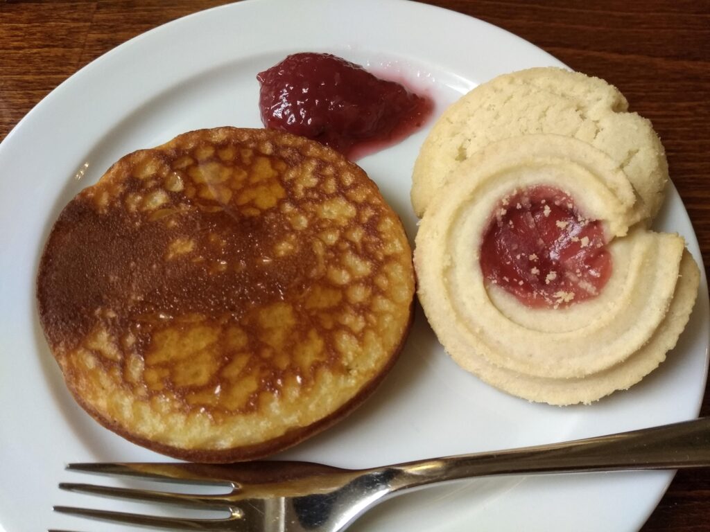 お腹いっぱい食べたあとに、デザートのパンケーキ。