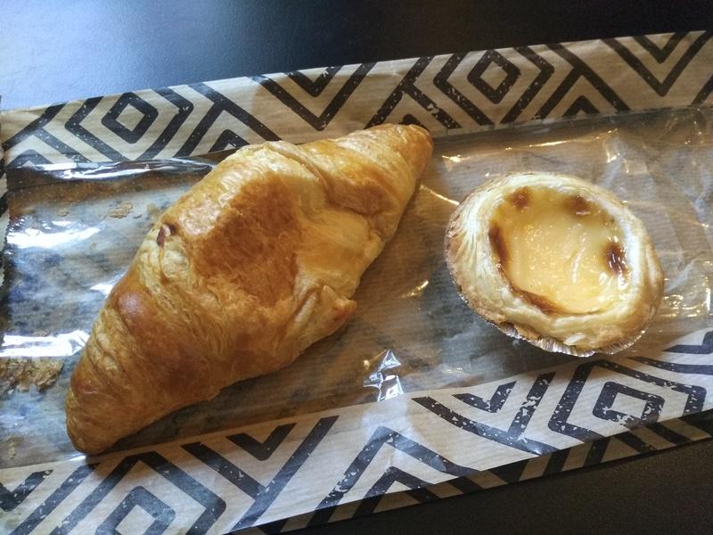 パンは、クロワッサンと、カスタードパンで約130円。安いっ。