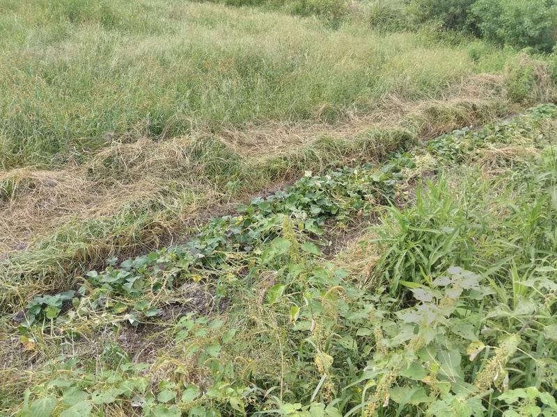 重い腰を上げて草ひきがんばりました。雑草に埋もれて、ちゃんと芋は生きていたようです。すごいです。