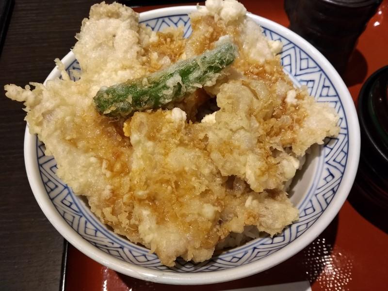 豚天丼!というものも注文、シェアして食べました。これはこれで、また違ったおいしさで楽しめました。