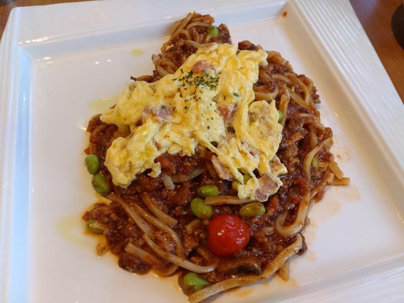 じゃーん。こんな感じでした。麺がとてももっちりしていて、ミートソースも濃厚。具も、豆やトマトなどたくさん入っていて、大満足でした。