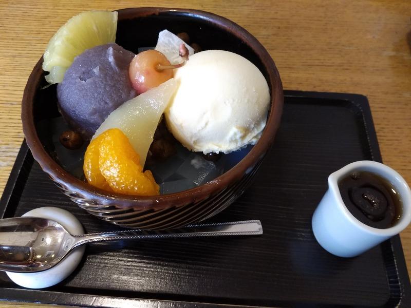 なかなかのボリューム感でしたが、アイスとこしあん、そして黒蜜がいい具合に混ざって、おいしかったです!