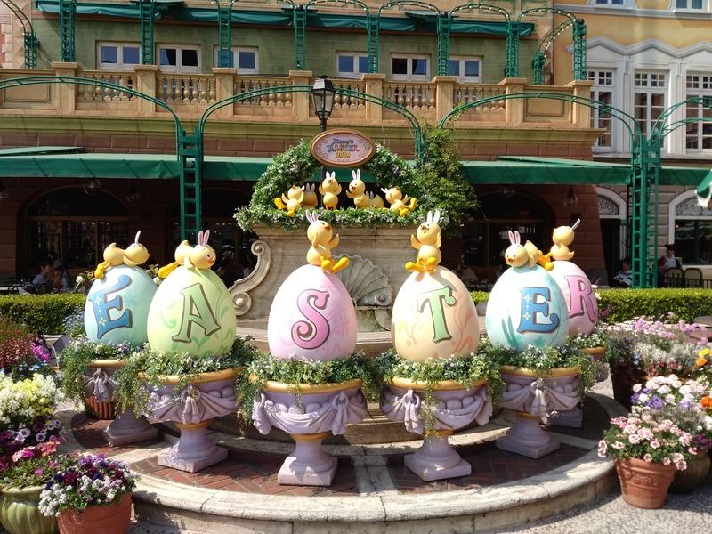 この時期は、「ディズニー・イースター」というイベントをやっていて、パークの中に、たくさん、たまごやひよこがいて、かわいかったです。