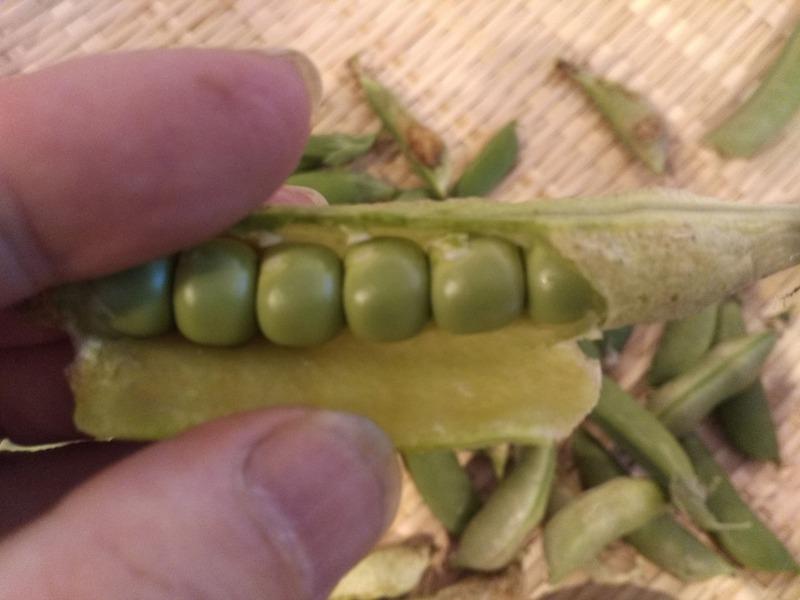 まず、スナップエンドウ。もう、ほとんど終わりかけで、鞘が茶色くなってきていたのですが、
