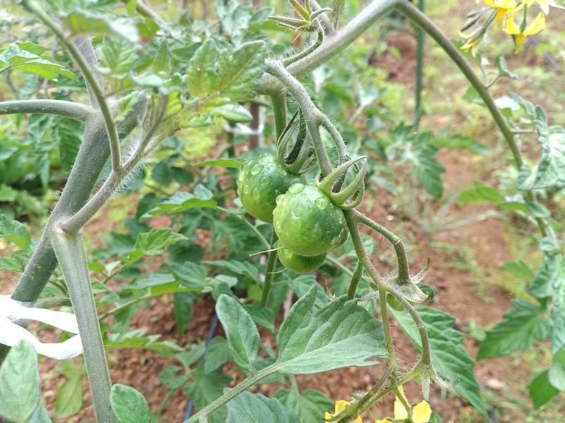 トマトがかわいい実をつけてるんですね!早くてビックリです。これから、大きく赤くなっていくのが楽しみですね。