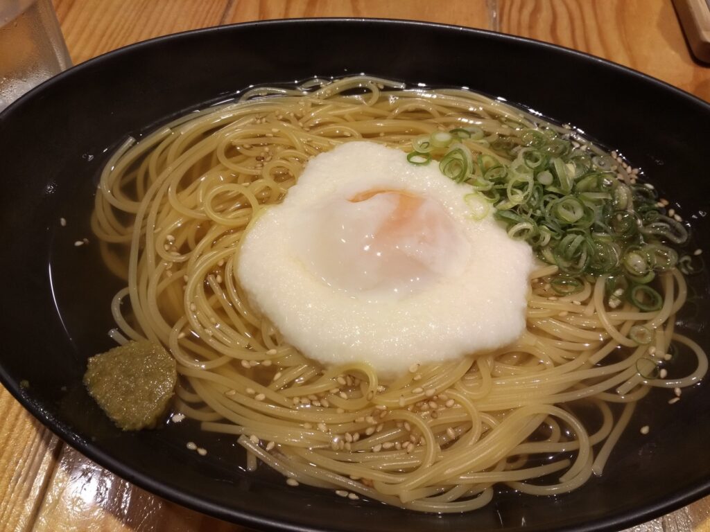 山かけは和風だしであっさり、ゆず胡椒が少し辛かったです(汗)。