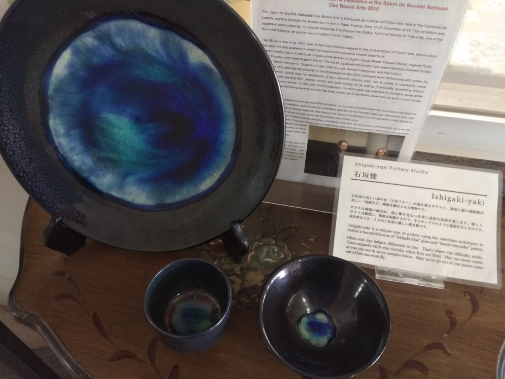 石垣焼は、石垣ブルーと呼ばれる、青いガラスが特徴の焼き物です。