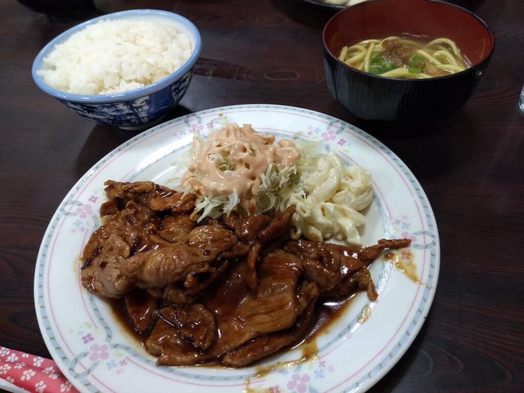 生姜焼き定食、ポーク玉子定食ともに、600円。安い。