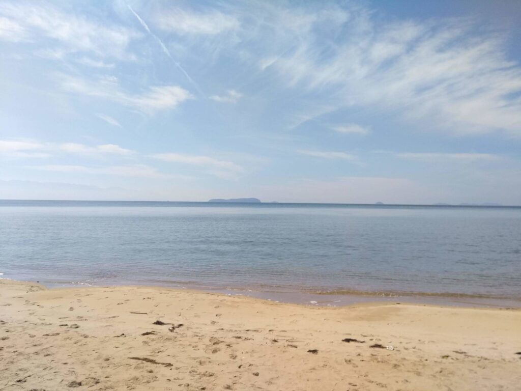 今は(12時くらい)は、ちょうど大潮の満潮で、こんな感じのようだけど、実は、遠浅になっていて、潮が引くと沖まで砂浜が続くみたい。