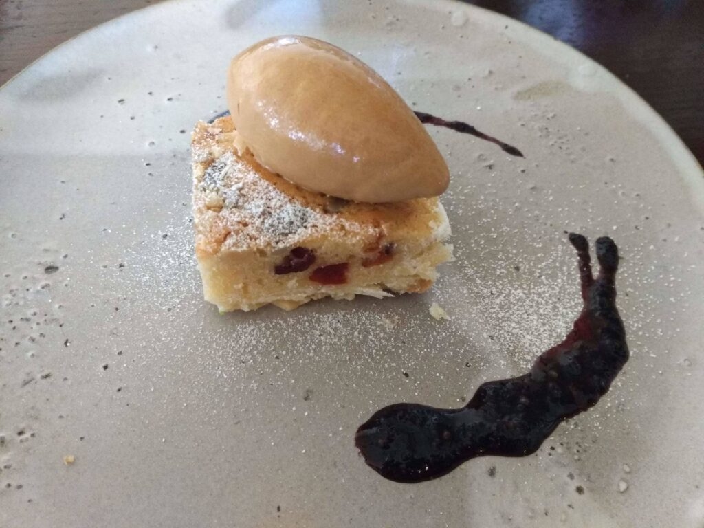 ナッツの入ったパウンドに、塩キャラメルのアイスがのっていて、塩味がいいアクセントになっていました!