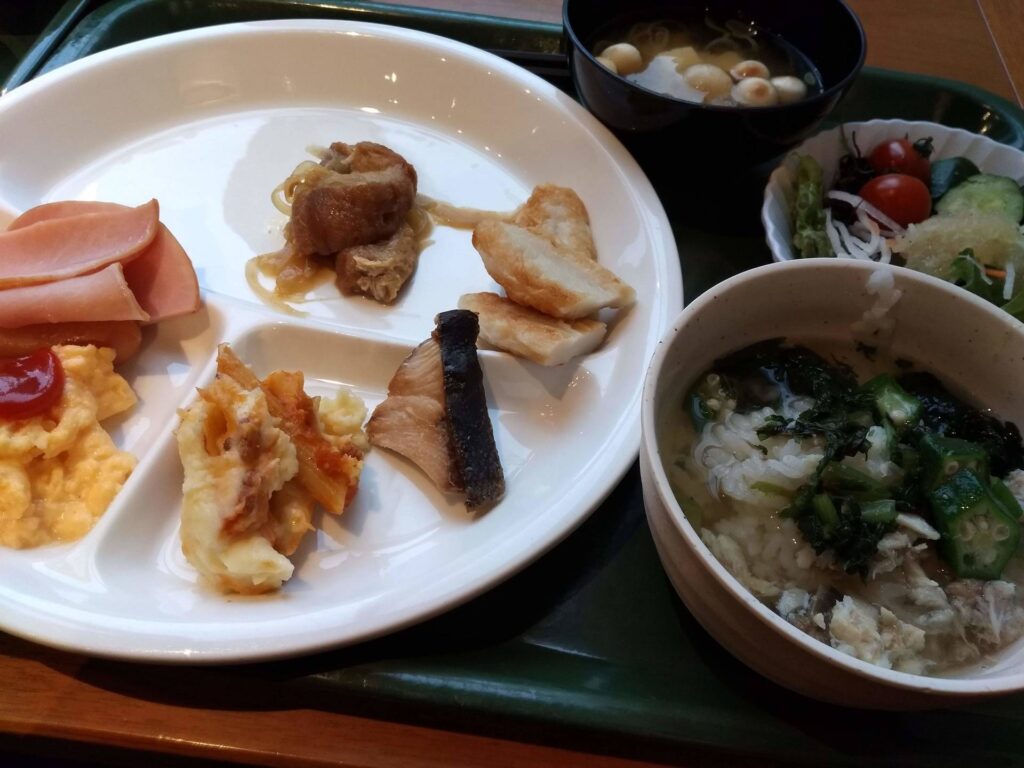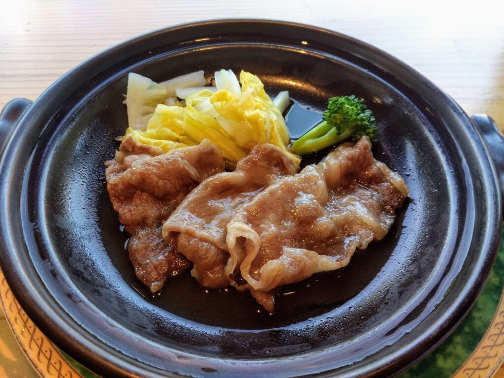 今回はいつもの朝食にプラス、仙台牛のすき焼きがついていました。