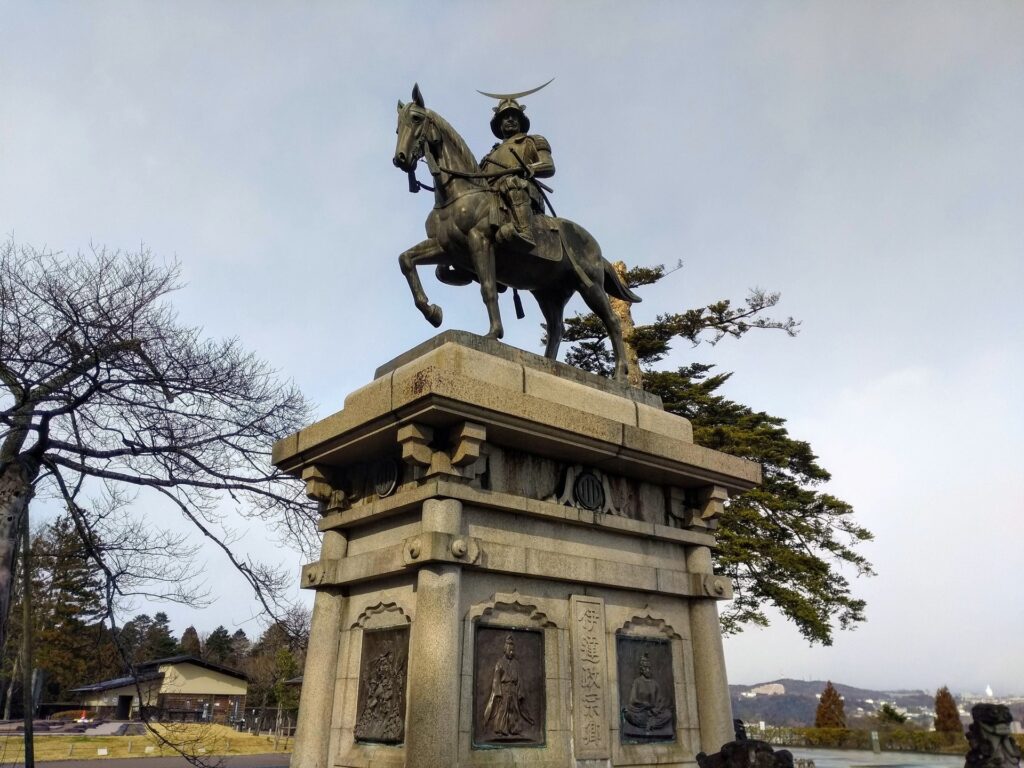 チェックアウトしてまずは青葉城跡へ。ホテルから3キロくらいの距離だったので歩いて向かったのですが、結構雨が降り出してきて、大変でした。ちょっと寒かったです(汗)