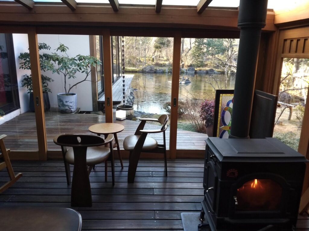 ラウンジは、薪ストーブの薪の香りが広がって、とても心地よかったです。