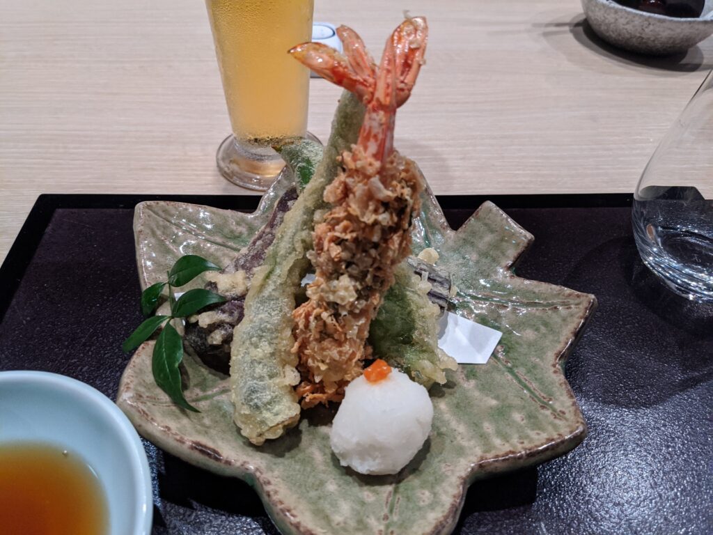 このエビの天ぷらは、「東寺揚げ」といって、湯葉を衣にしてあげているそうです。サクッとしておいしかったです。