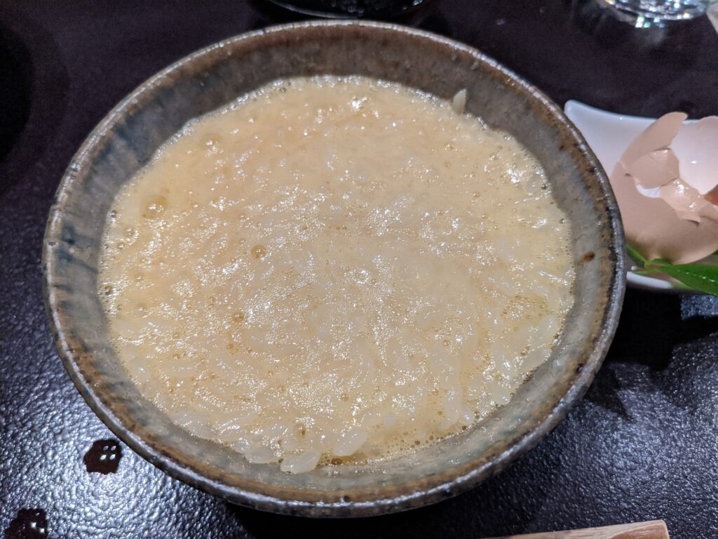 最後はお楽しみの「卵かけご飯」。土佐ジローの卵です。