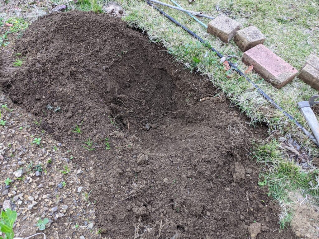 その中に、腐葉土を混ぜ合わせた土を入れて、植えます。