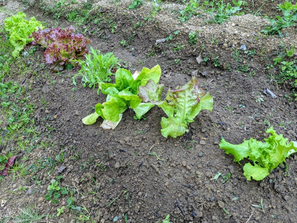 あと、少しお野菜の畝に、リーフレタス、サラダ菜、サラダ水菜を追加で植えました。
