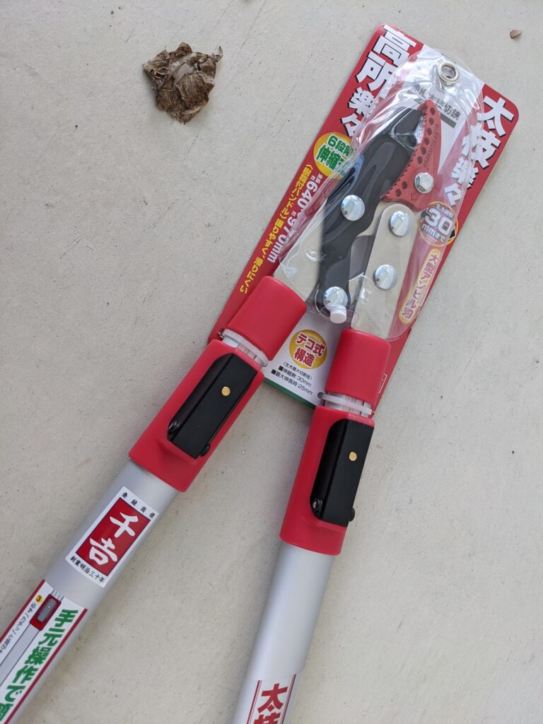 枝切ばさみを買いました。持ち手が1m位まで伸びるやつです。