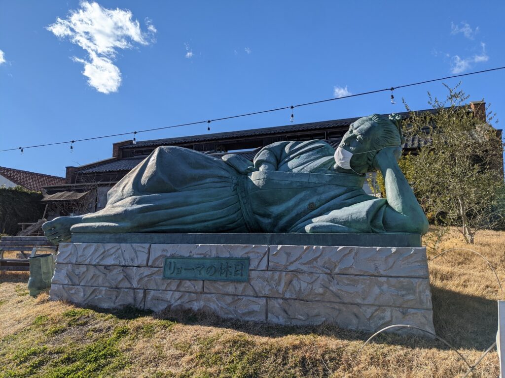 レストランの外には、昼寝をしている龍馬像が・・・!