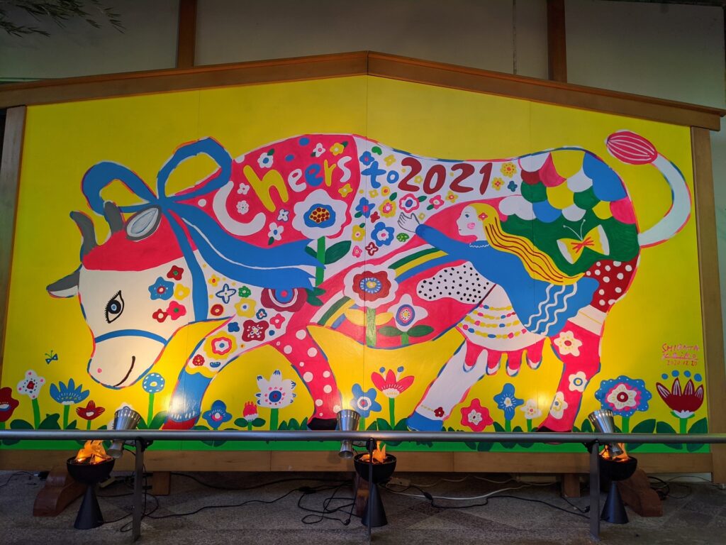 大国さまの初詣といえば、ジャンボ絵馬ですが、今年は絵本作家の「柴田ケイコ」さんの作品だそうです。